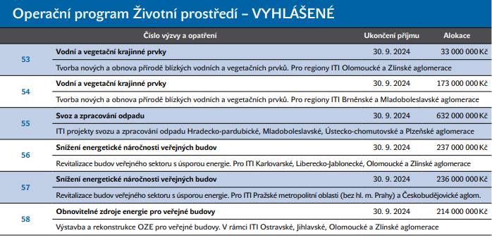 Stáhněte si aktualizaci HARMONOGRAMU VÝZEV OPŽP