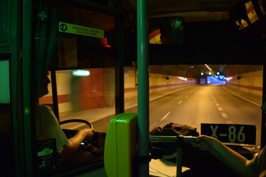 Autobus tunelem nejdřív po jeho rekonstrukci