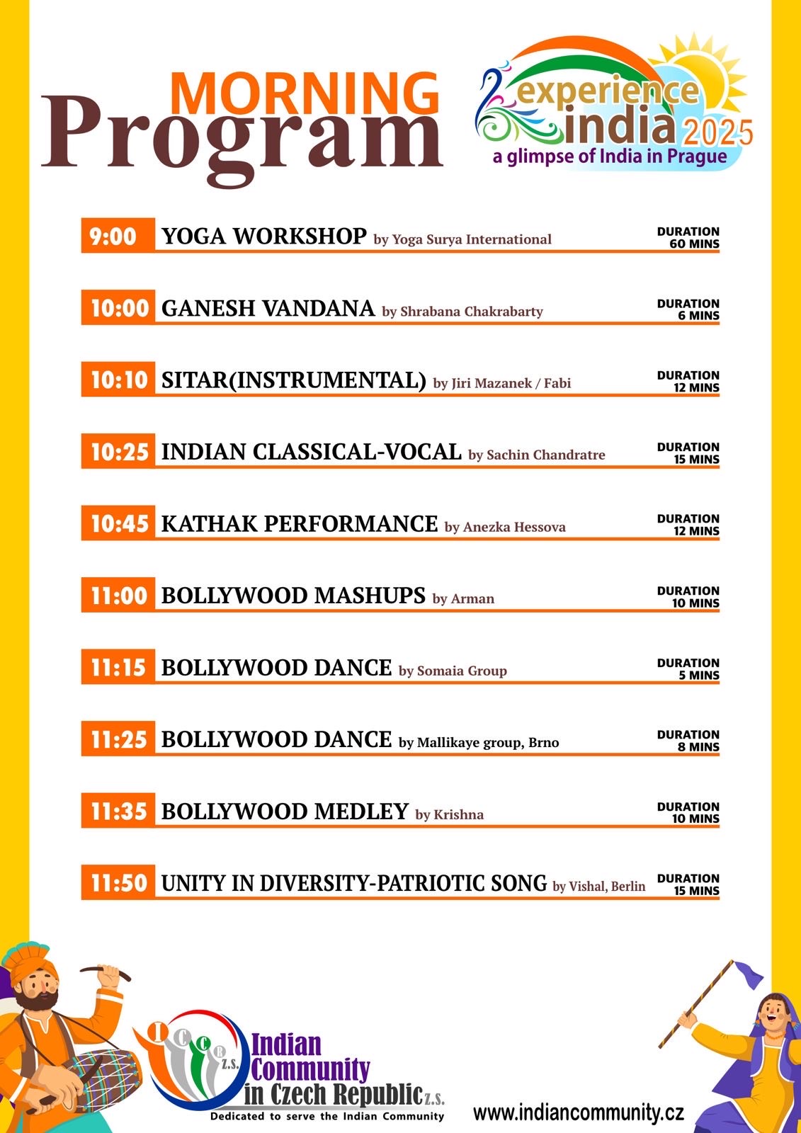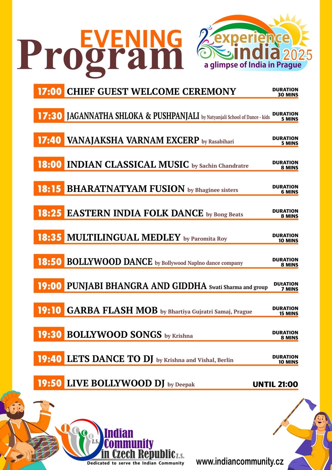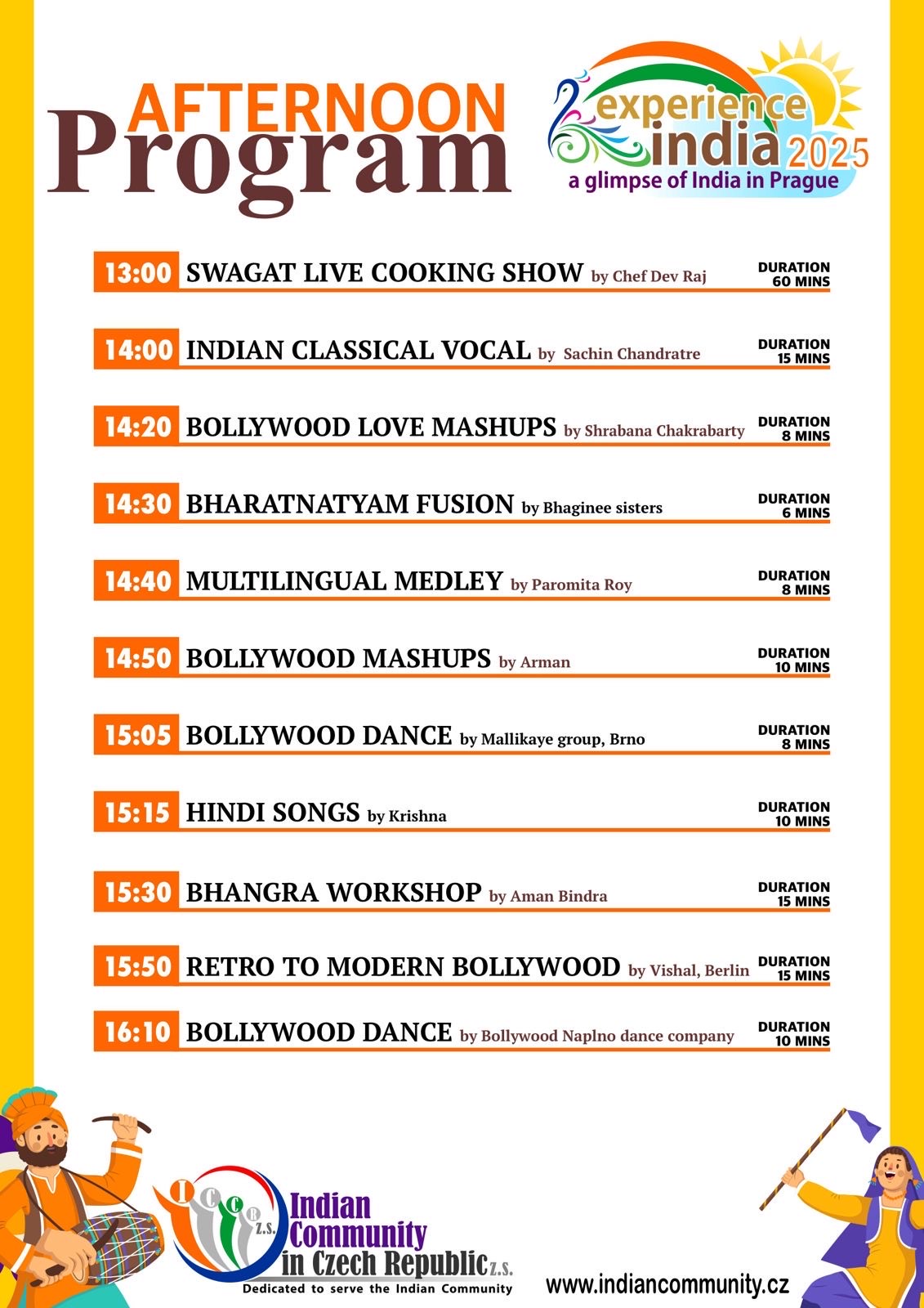 Bohatý kulturní doprovodný program po celý den – nenechte si ujít například okouzlující tance ze všech koutů Indie a tradiční indickou zábavu.