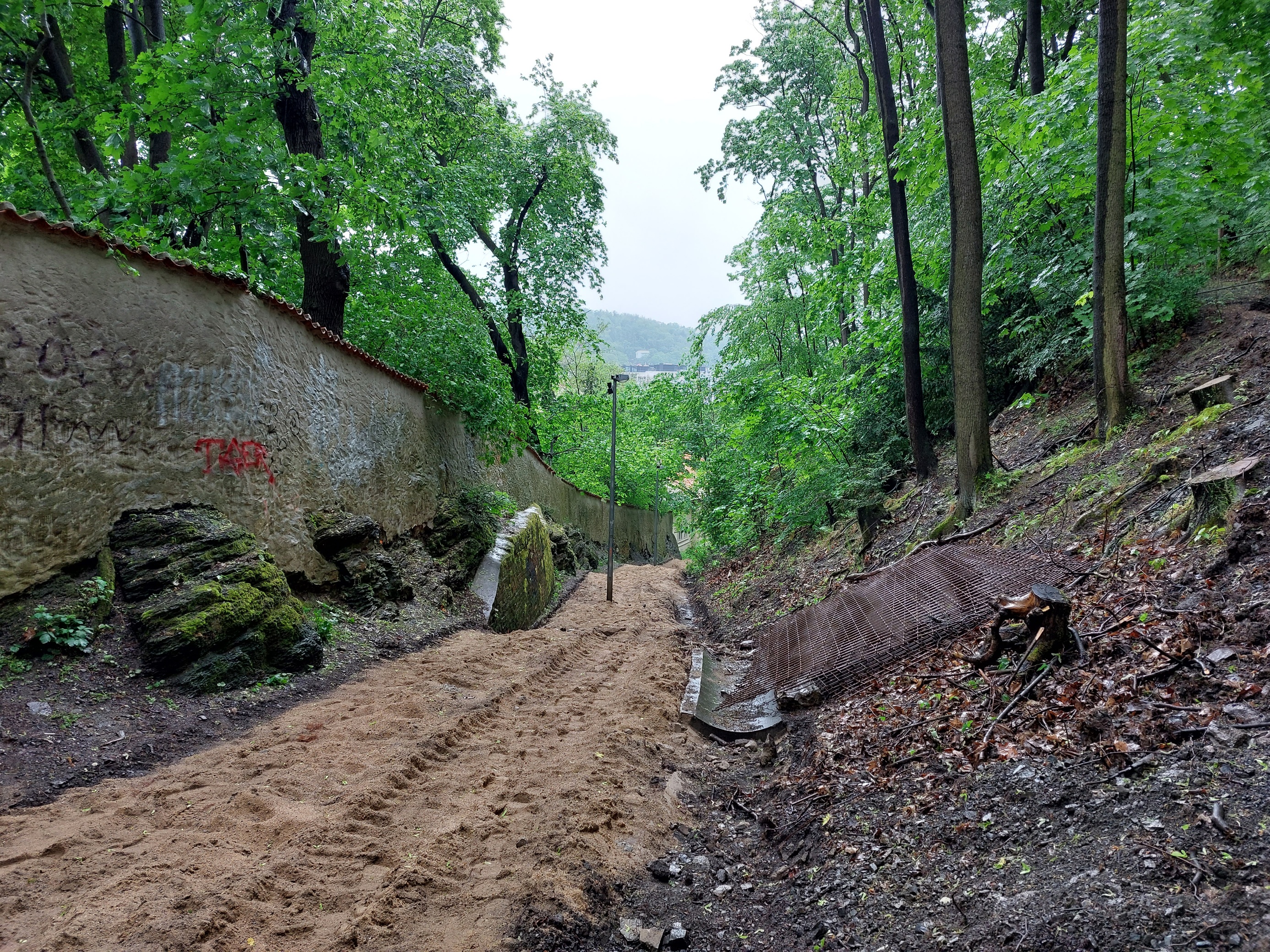První etapa zahrnovala opravu pěších komunikací, opravu schodišť a zábradlí, opravy opěrných zídek, vybudování nových propojek a zpevnění přírodně pochozích ploch, dále sadové úpravy a bourací práce na některých stavebních objektech. Doplněn byl mobiliář o nové lavičky a odpadkové koše, byl revitalizován odvod dešťových vod a vsakování.