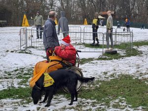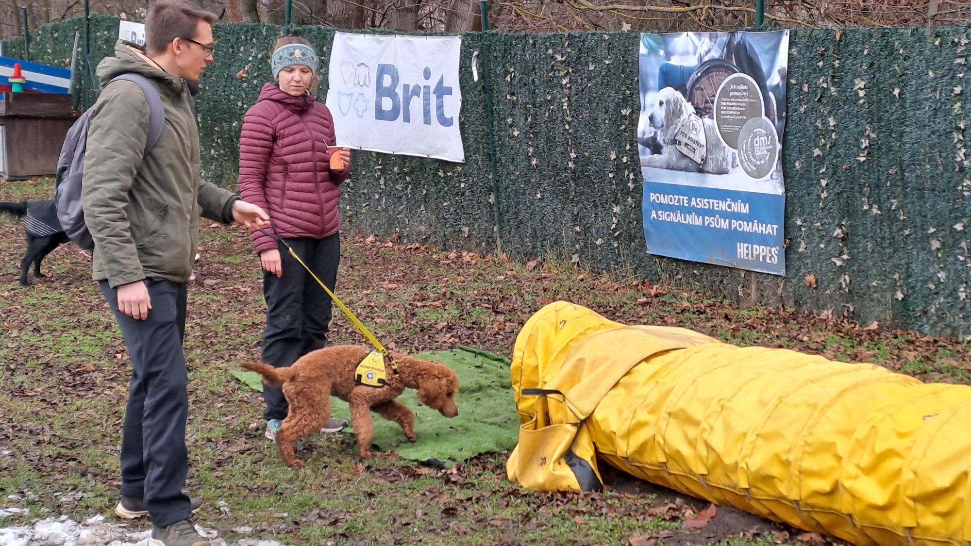 „Všichni lidé sedí na vozíčku, hodí buřta, pes ho přinese – první kolo. Další kolo – hodí buřta, dává se překážka. Postupně zvyšujeme obtížnost. Na závěr člověk sedí zády ke psu,“ popsala stručně Daušová.