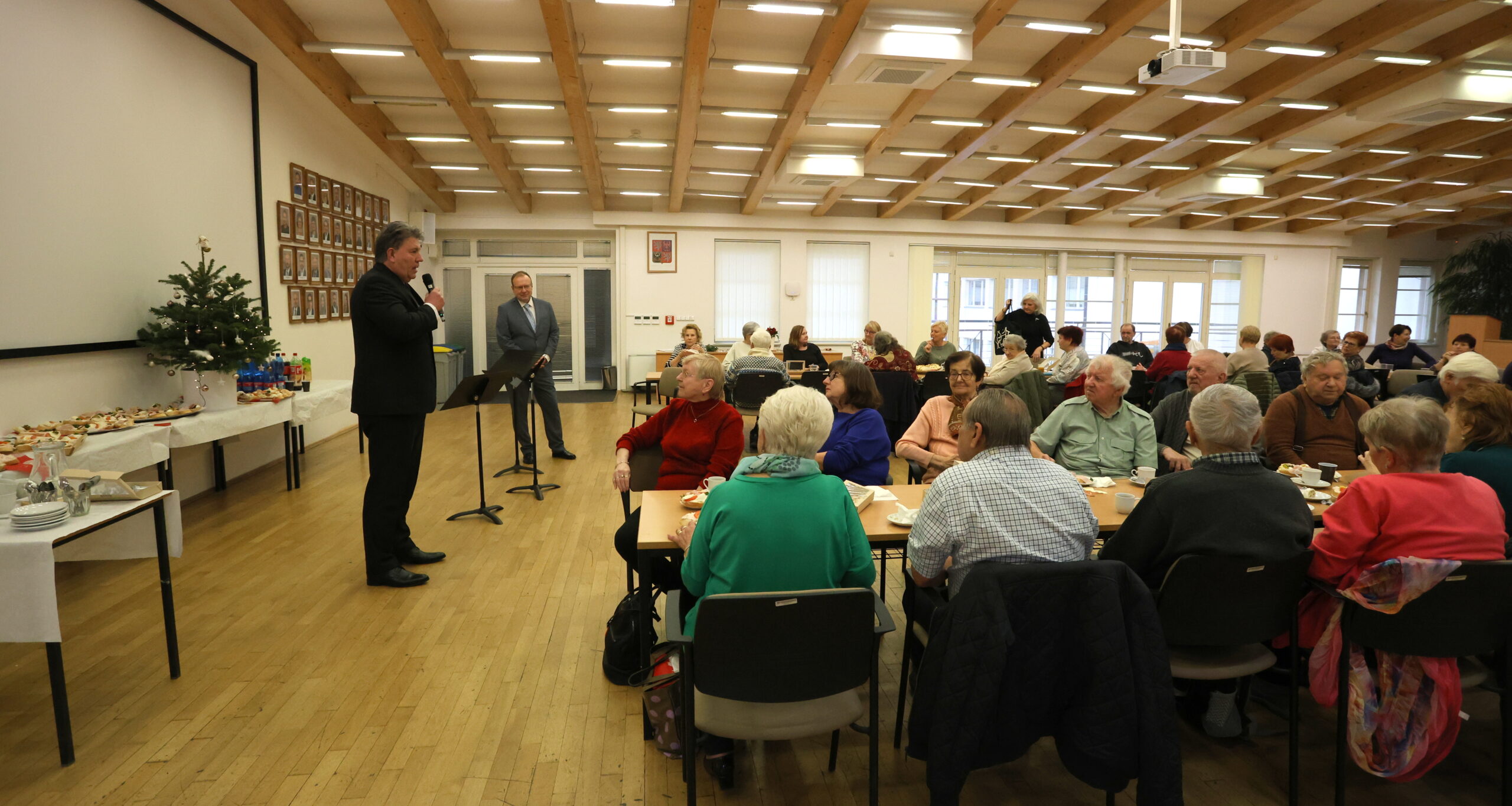 Na smíchovské radnici se jako každý rok před vánočními svátky sešli bývalý zaměstnanci úřadu. Poslechli si pěkné melodie, popovídali si, zavzpomínali na staré časy, občerstvili se kávou, cukrovím i chlebíčky, zkrátka užili si pěkné odpoledne.