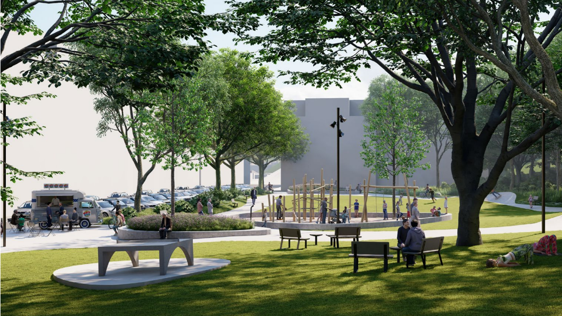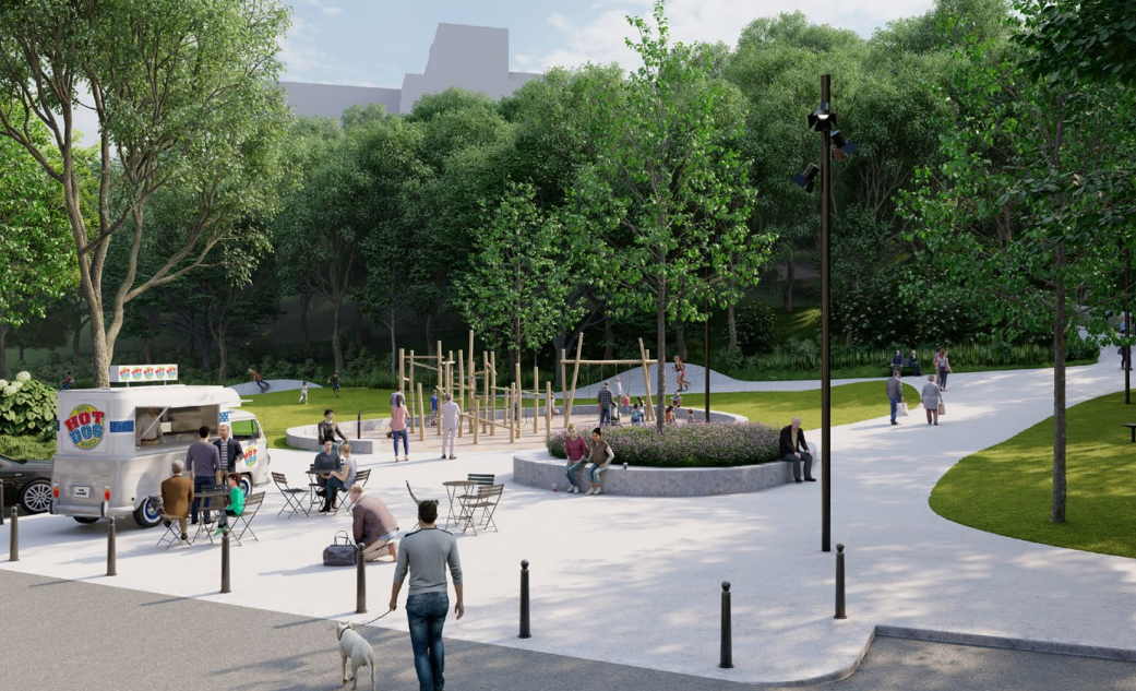 Městská část se chce pustit do revitalizace zelené plochy, vizualizace Jakub Cigler Architekti