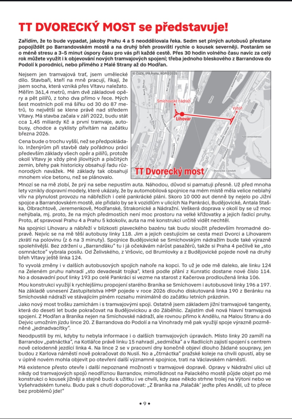 Změny v provozu Pražské integrované dopravy v té souvislosti nastanou již na počátku března příštího roku, kdy nová stavba začne sloužit veřejnosti. Na Dvorecký most mezi Zlíchovem a čtvrtou částí vyjedou tramvajové linky 20 a 21 a čtyři linky autobusů 118, 124, 196 a 197.