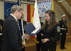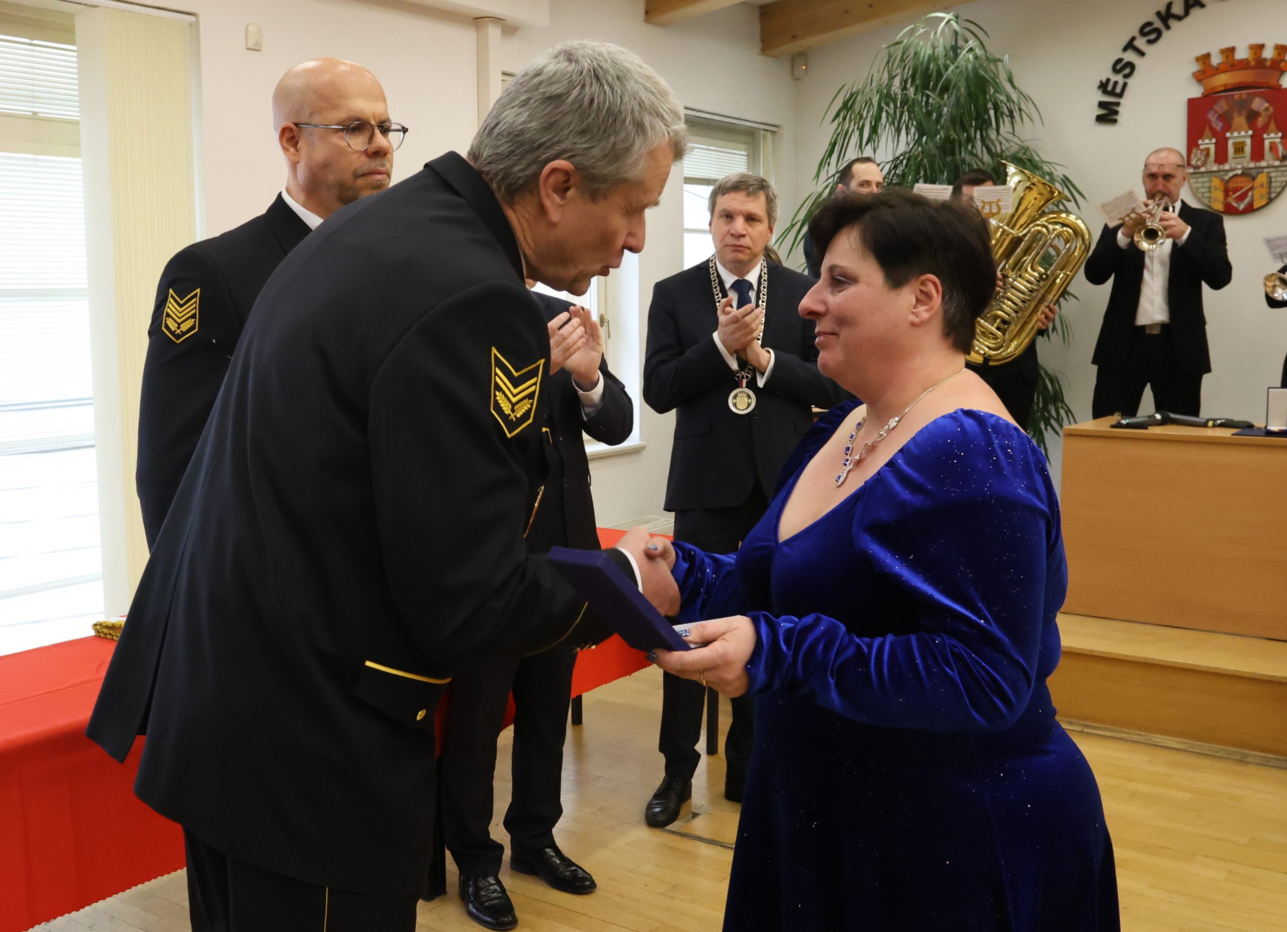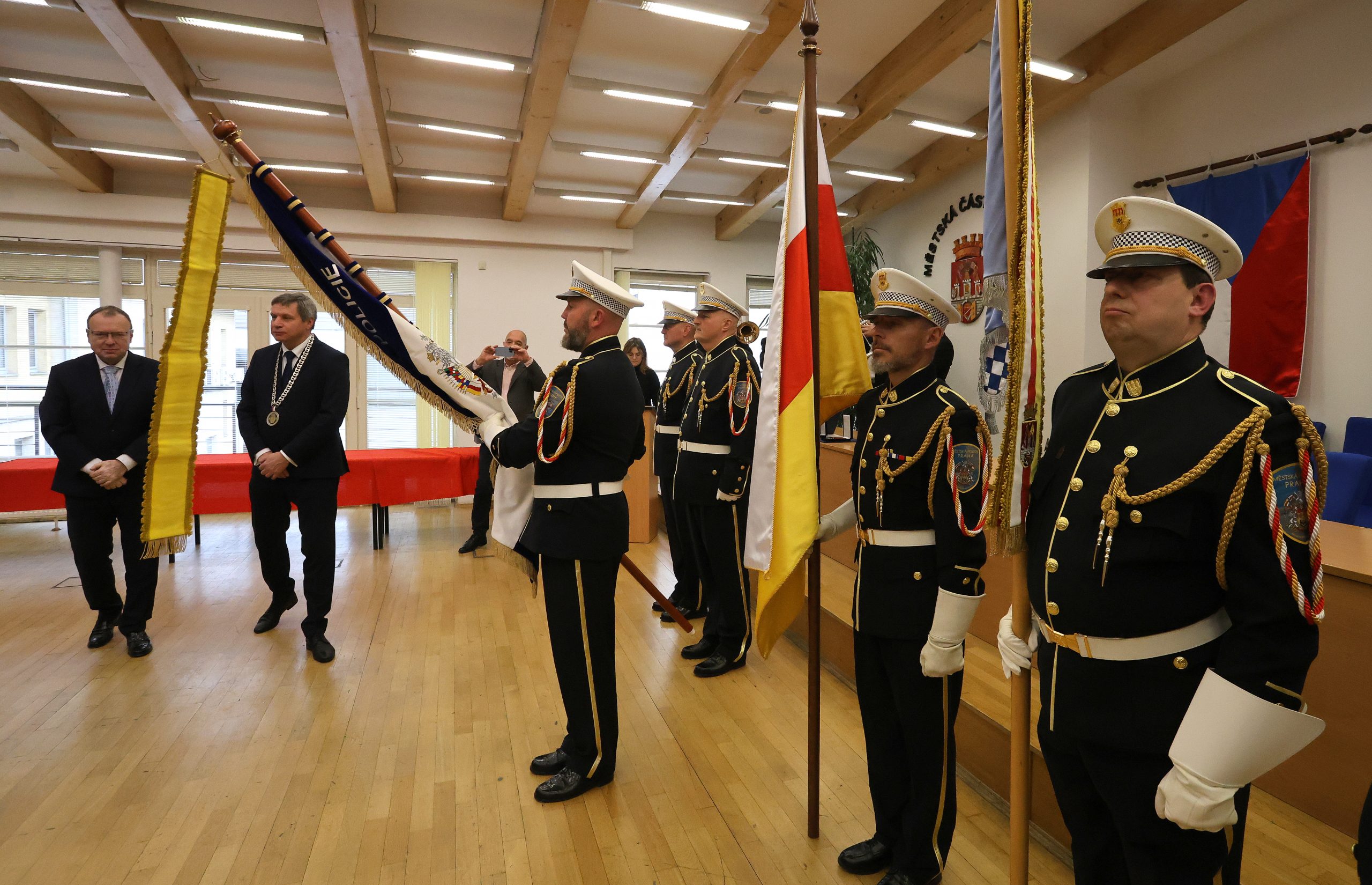 A na závěr starosta a místostarosta zavěsili záslužnou stuhu na prapor městské policie jako výraz vděku, úcty a respektu.
