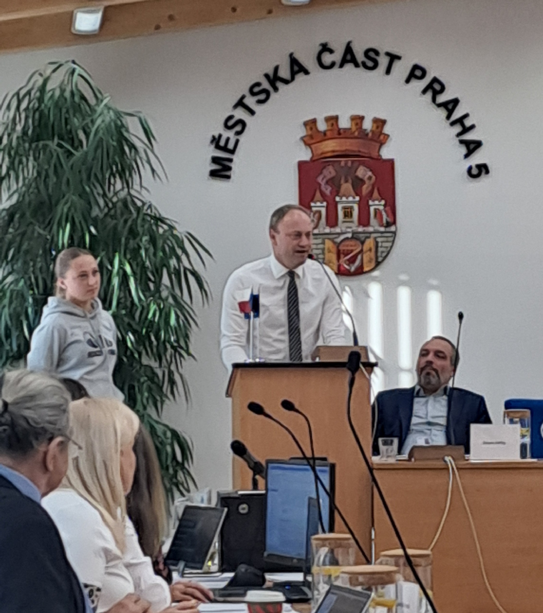 Před zastupiteli vystoupil předseda klubu a šéftrenér hokejistů Michal Gandalovič, foto Praha 5