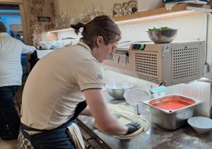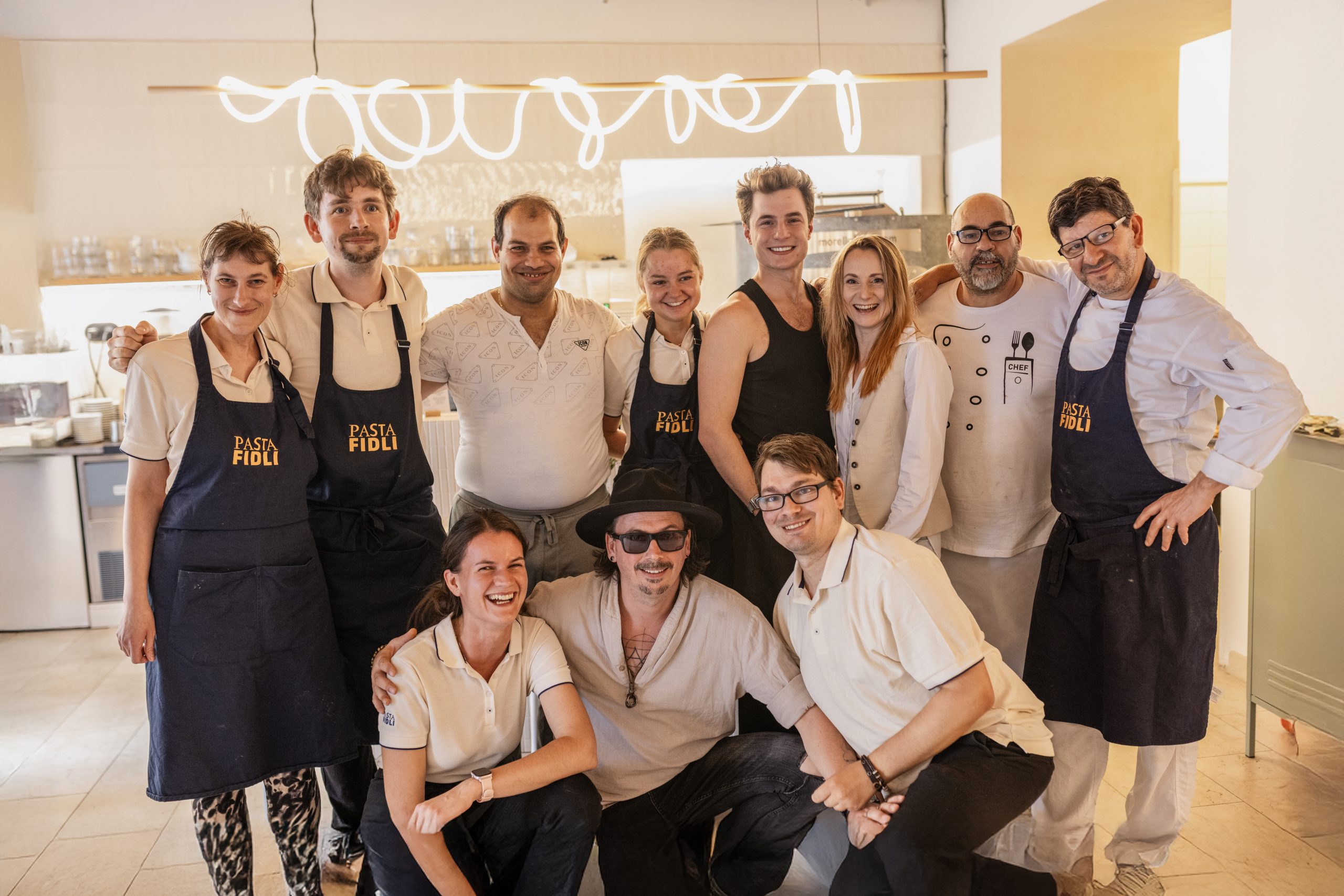 V roce 2023 skupina Etincelle převzala sociální podnik Pasta Fidli, který vyráběl chlazené těstoviny v Mníšku pod Brdy. „Hledali jsme různé prodejní kanály – naše těstoviny dodáváme například i do hypermarketů Globus – a došli jsme k tomu, že otevřeme restauraci zaměřenou na vlastní těstoviny. A od toho byl jen krůček přiřadit pizzu,“ líčil Knězů, jak se zrodil nápad otevřít pizzerii, která nabízí tradiční italský sortiment. „Svíčkovou tady prostě nenajdete,“ směje se u elektrické pece italské značky, na kterou nedá dopustit. Uvnitř sálá 450 stupňů a pizza je hotová za tři minuty. „Nepotřebuje komín. Pro laika to může znít jako detail, ale pro toho, kdo má nebytové prostory, ví, že vzduchotechnika je často problémem,“ těší ho.
