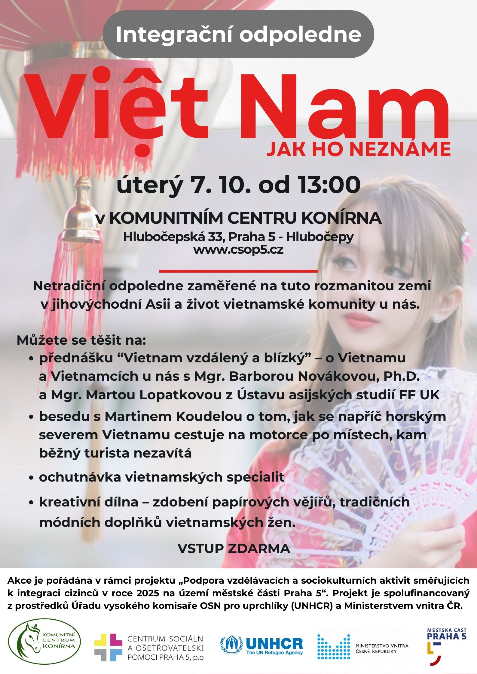 Na netradiční odpoledne zaměřené na Vietnam zve komunitní centrum Konírna v Raudnitzově domě v Hlubočepích v úterý 7. října. Akce nazvaná Vietnam, jak ho neznáme startuje od 13 hodin.