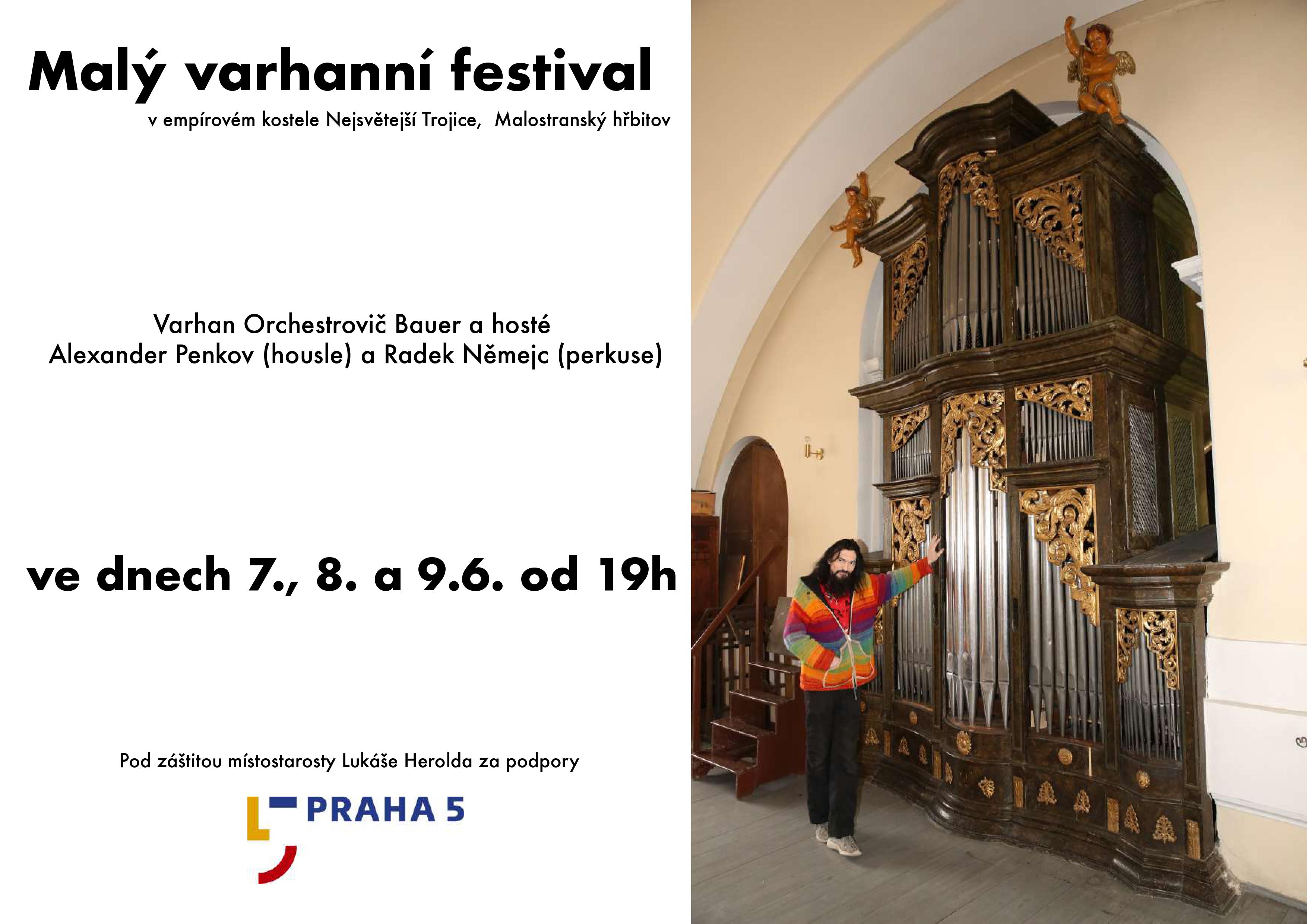Pod záštitou místostarosty Lukáše Herolda a za podpory městské části Praha 5 se uskuteční varhanní festival v kostele Nejsvětější Trojice (Smíchov, stanice tramvaje Bertramka), zahraje Varhan Orchestrovič Bauer a jeho hosté.
